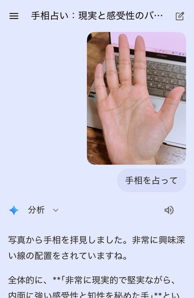 写真から手相を拝見しました。