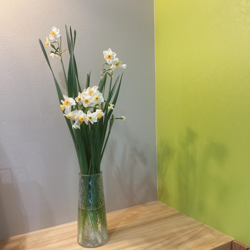 清楚で可憐な姿を見せてくれる水仙の花。