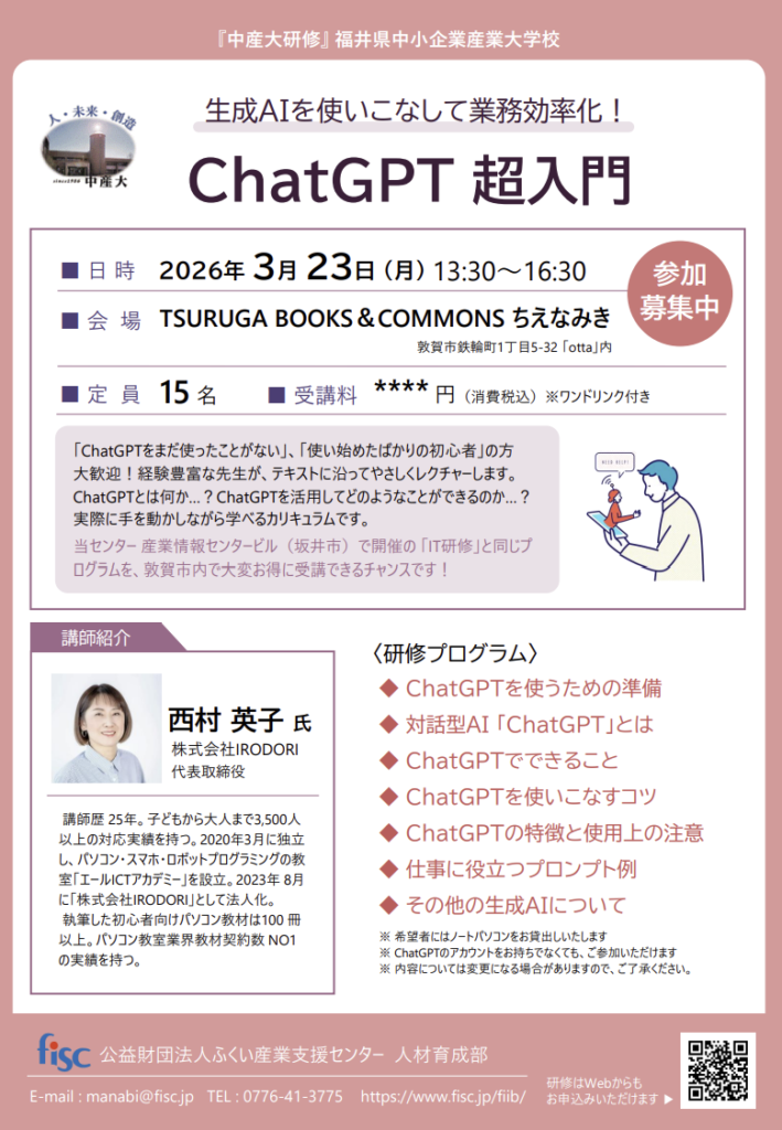 「ChatGPT業務活用講座」in福井西商工会議所