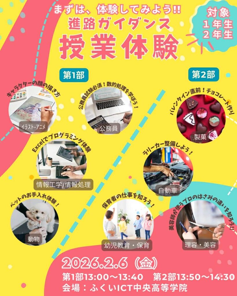 進路ガイダンス「専門学校編」体験授業します!@ふくいICT中央高等学院