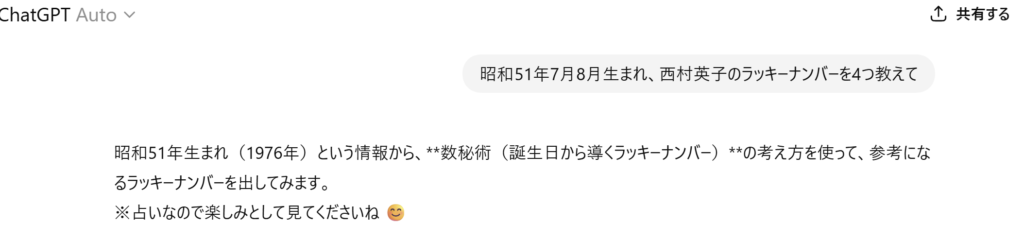 Aiにラッキーナンバーを聞くという。