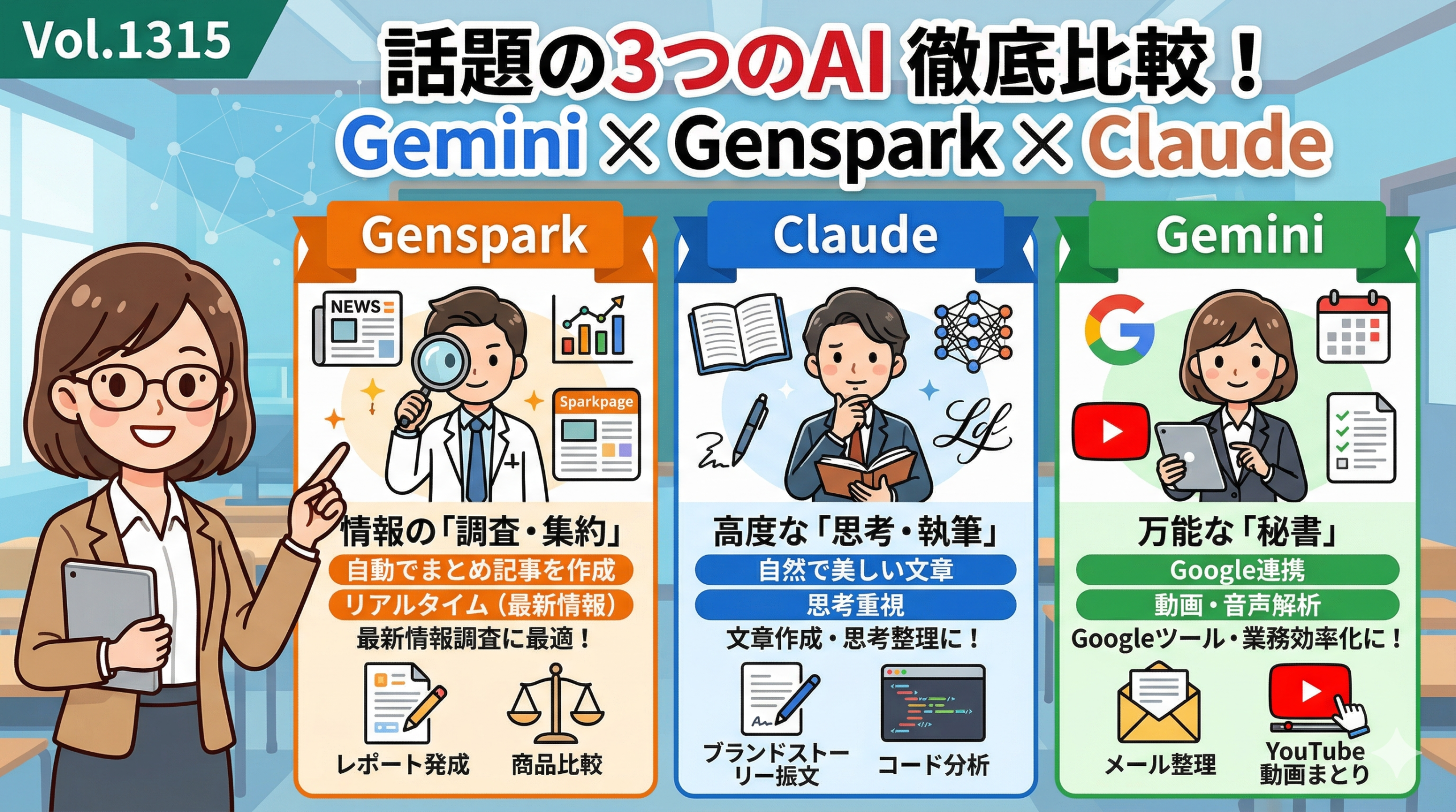 それで、Gemini、Genspark、claudeは何が違うの?