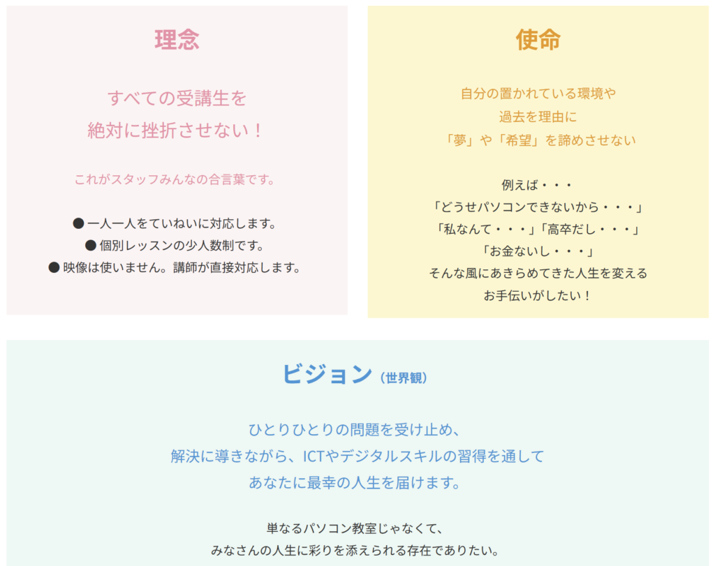 教育理念や行動指針を