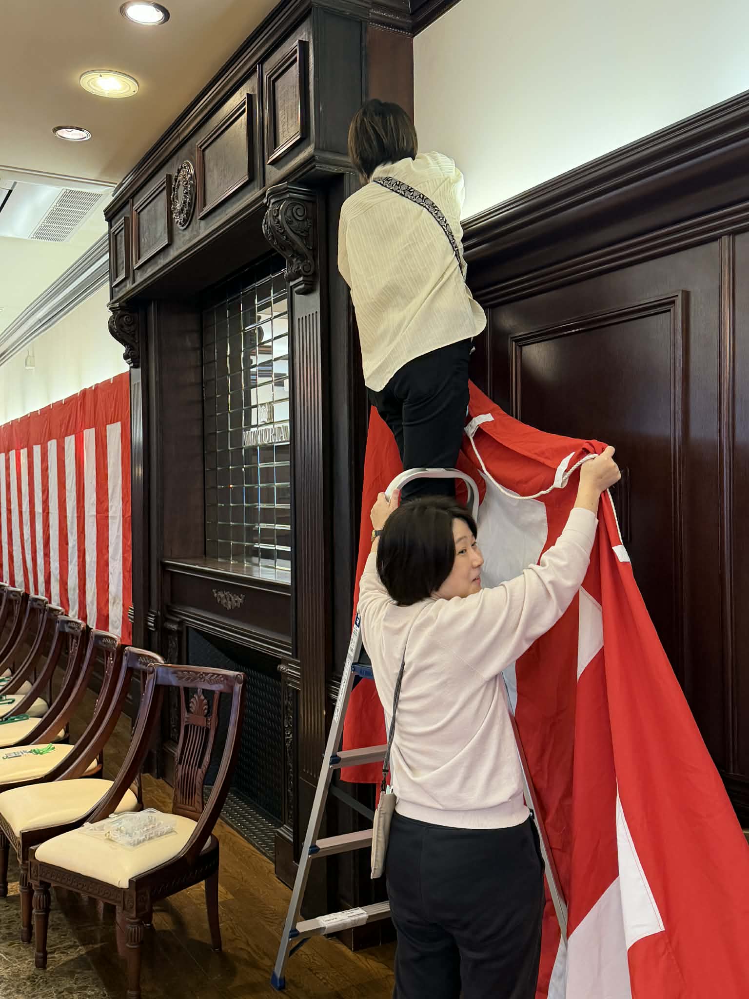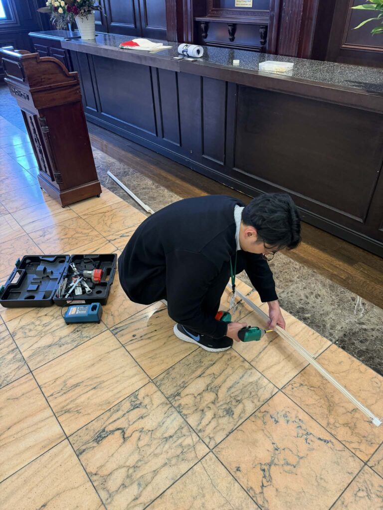 社員総出で会場設営です。