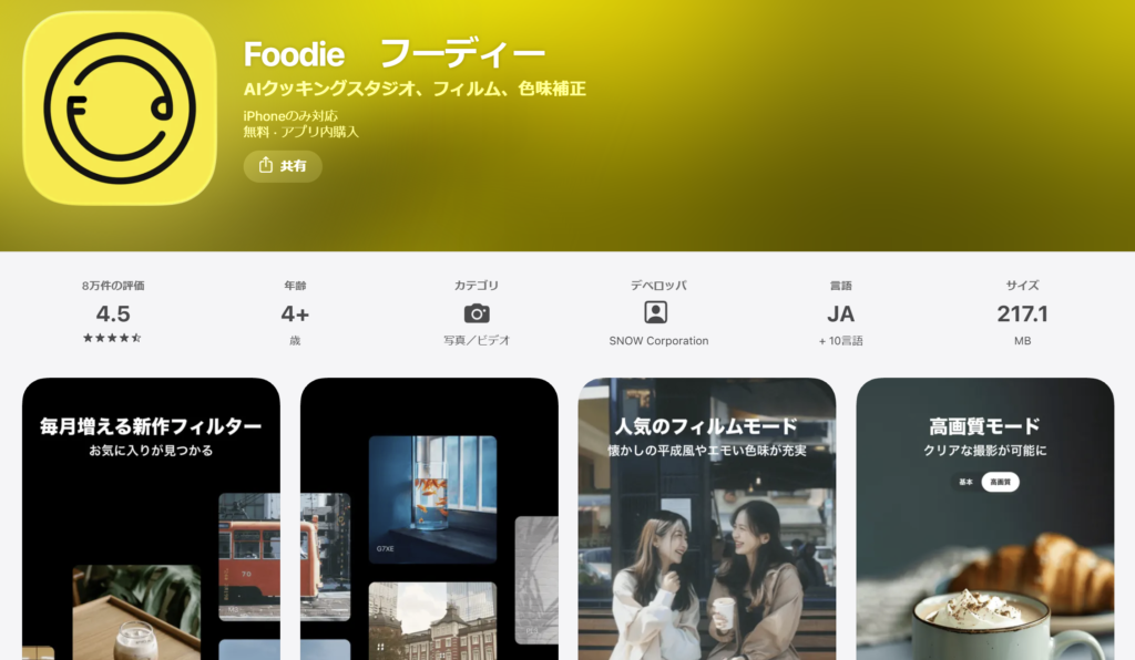色味補正のFoodieアプリがおススメ!